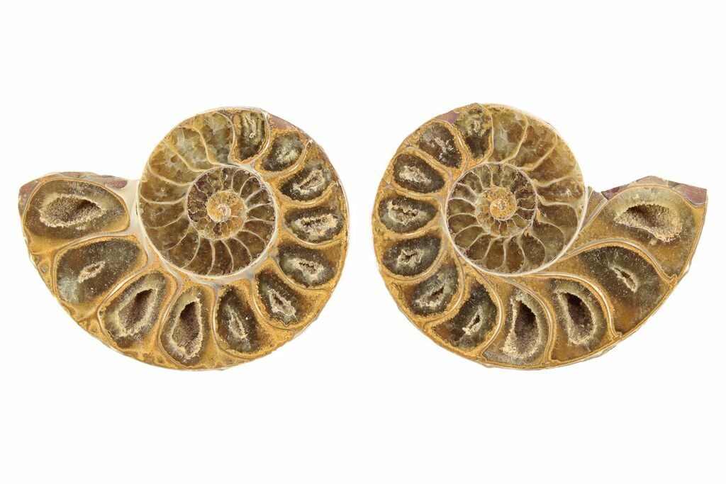 These are cut and polished orange ammonites collected near Sakaraha in the Tulear Province of Madagascar. Most of the cut and polished ammonites from Madagascar are Cretaceous in age, but those with an orange/yellow/pink coloration are often Late Jurassic (Oxfordian Stage) in age. The photos are representative examples of what they look like. For each ammonite ordered you will receive both halves. There is some variation in size, but they range from approximately 2" to 2 1/2" wide (each half)