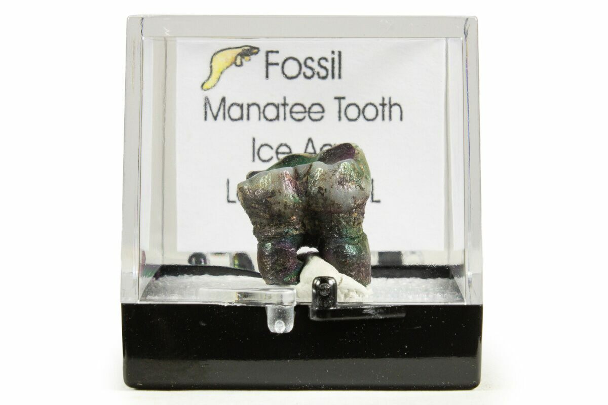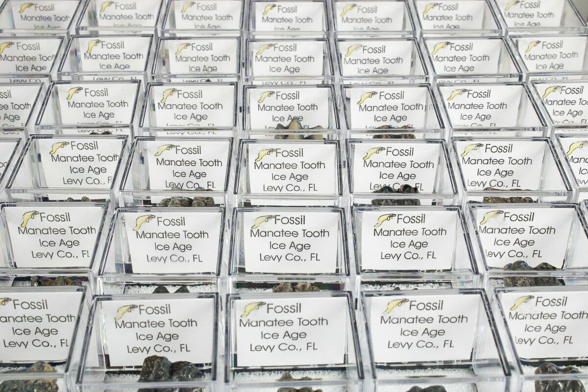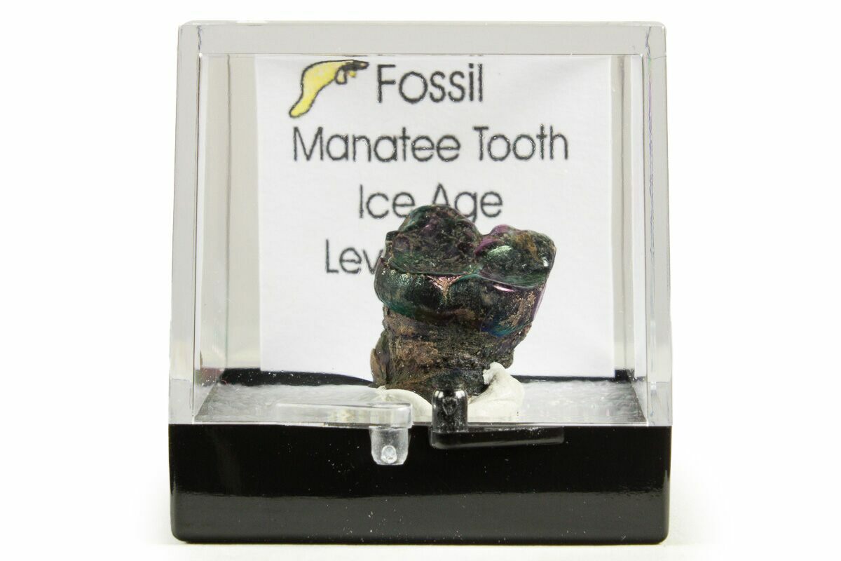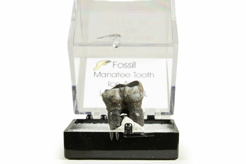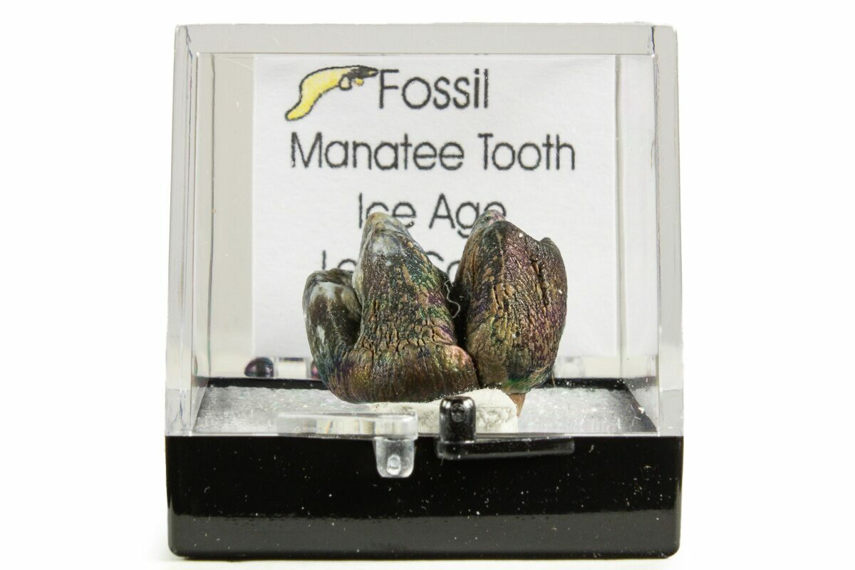 These are fossilized manatee (Trichechus sp.) teeth collected from the Withlacoochee River in Levy County, Florida. These teeth are Late Pleistocene in age and measure between 1/2" and 3/4" long, with most in the middle of that range. The photos are representative of the fossil(s) you will receive but don't picture the exact ones. Each tooth is accompanied by an acrylic perky hinge display case.