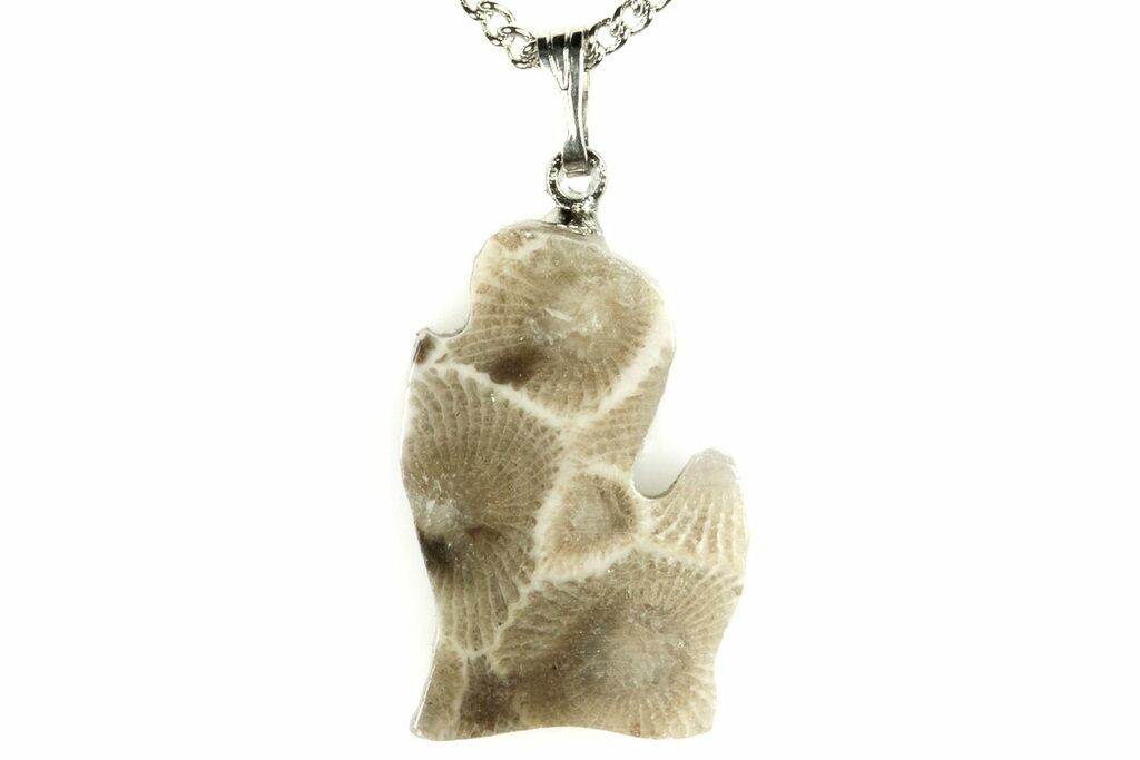 Polished Petoskey Stone (Fossil Coral) Necklaces - Shape of Michigan