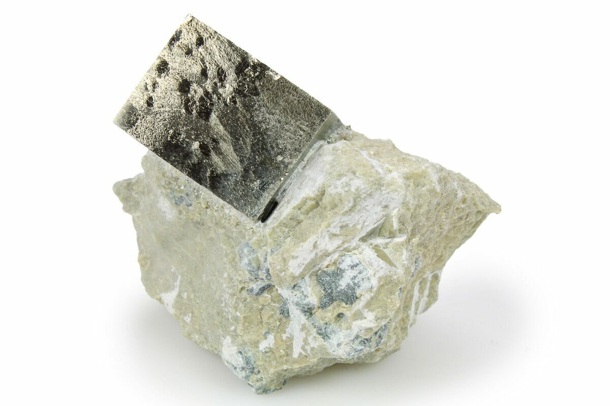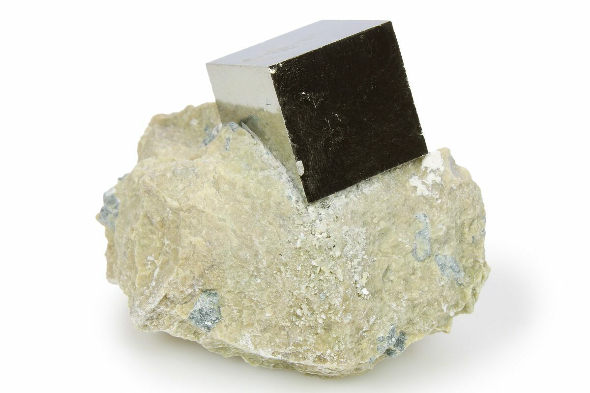 Shiny Natural Pyrite Cube in Rock - Navajun, Spain
